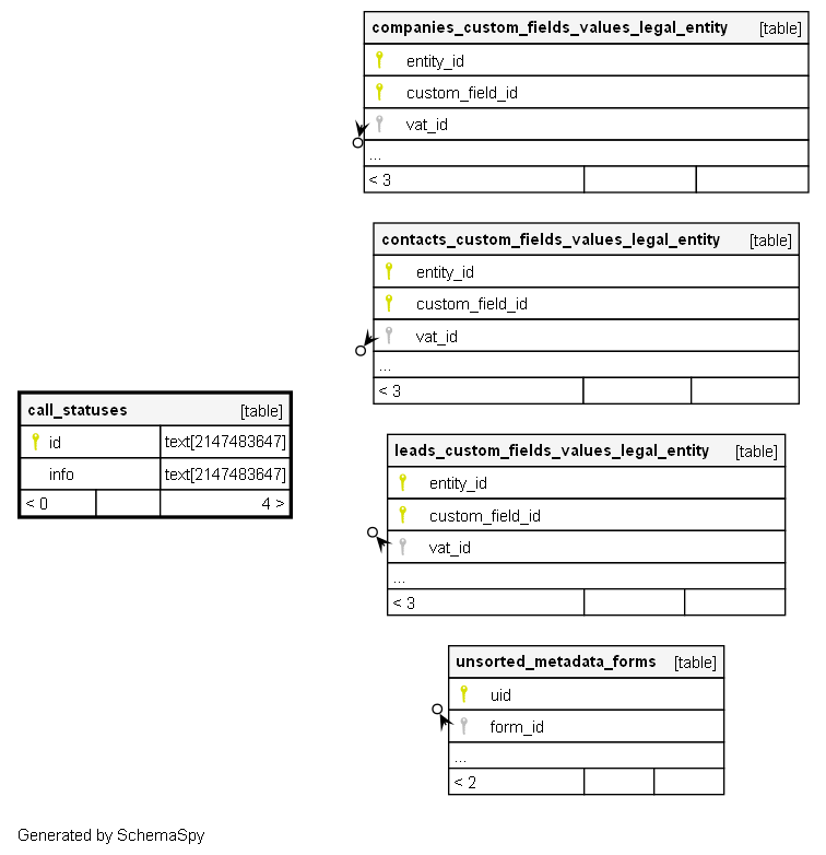 | Column | Type | Size | Nulls | Auto | Default | Children | Parents | Comments | ||||||||||||