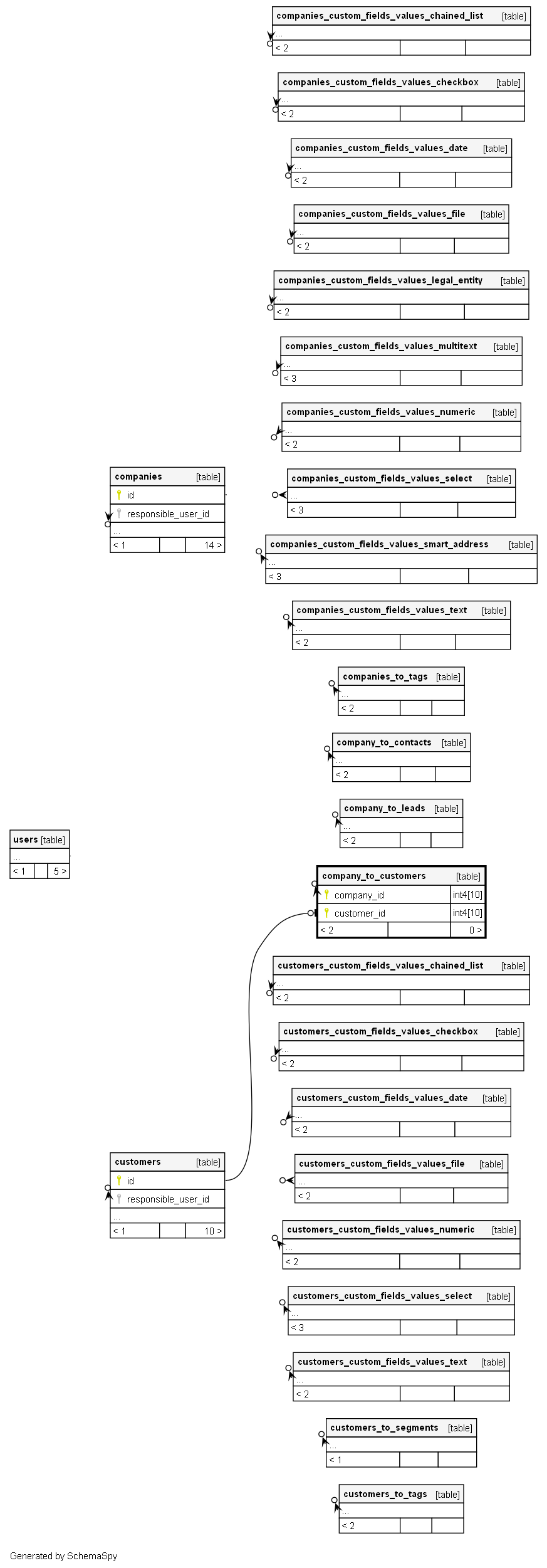 | company_to_customers_pkey | Primary key | Asc/Asc | company_id + customer_id |