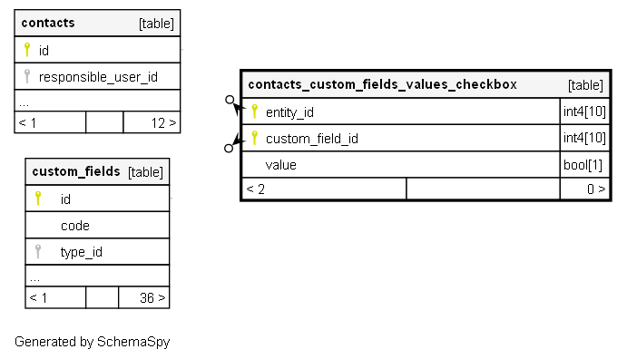 | contacts_custom_fields_values_checkbox_pkey | Primary key | Asc/Asc | entity_id + custom_field_id |