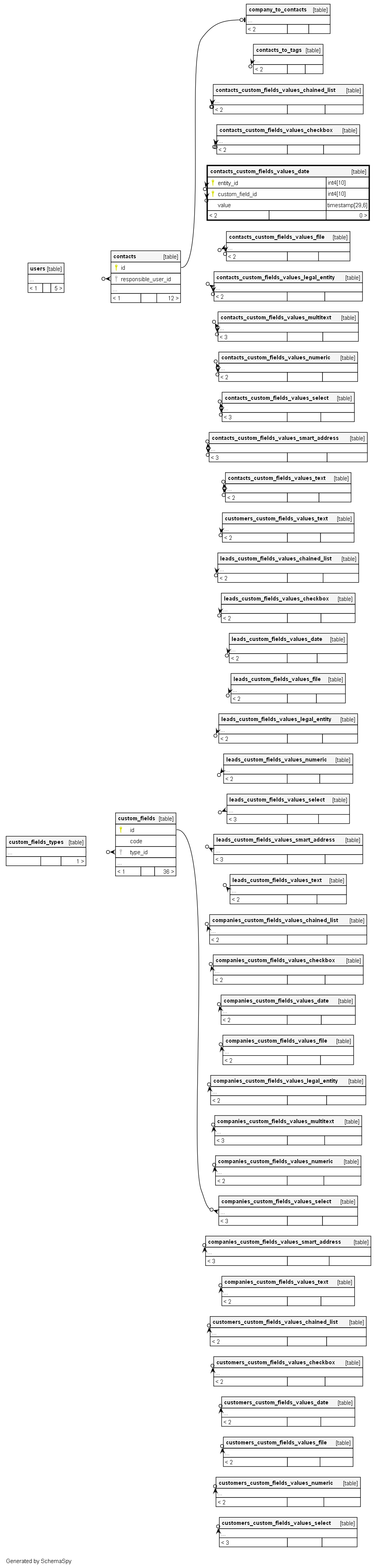 | contacts_custom_fields_values_date_pkey | Primary key | Asc/Asc | entity_id + custom_field_id |