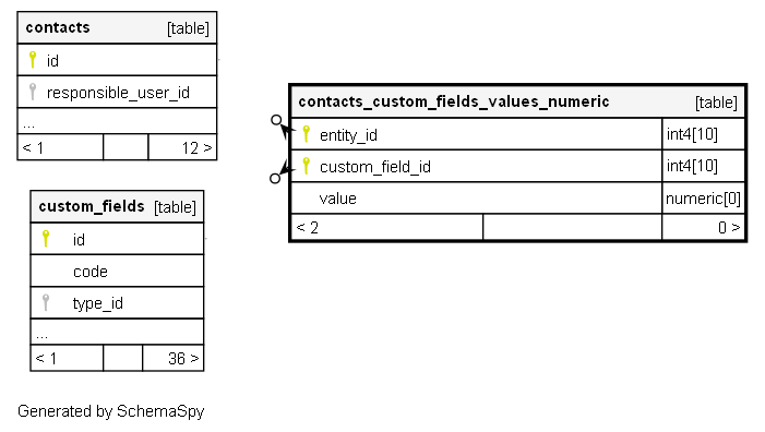 | contacts_custom_fields_values_numeric_pkey | Primary key | Asc/Asc | entity_id + custom_field_id |