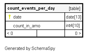 | count_events_per_day_pkey | Primary key | Asc | date |