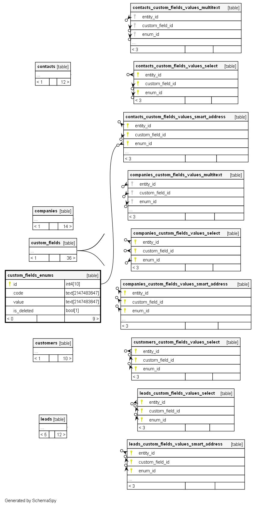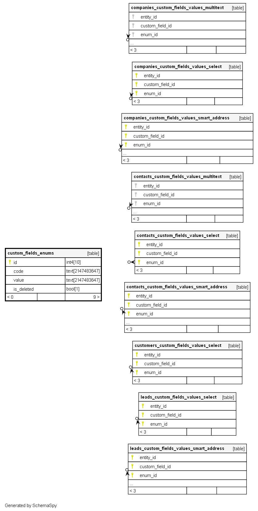 | custom_fields_enums_pkey | Primary key | Asc | id |