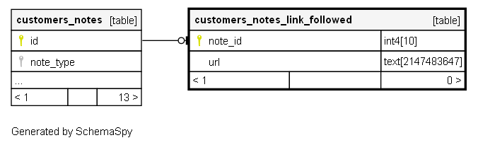 | customers_notes_link_followed_pkey | Primary key | Asc | note_id |