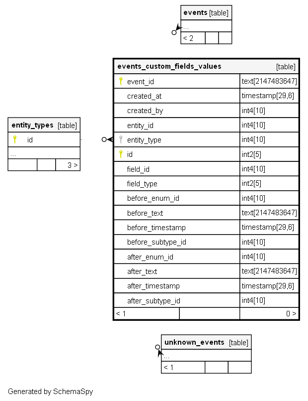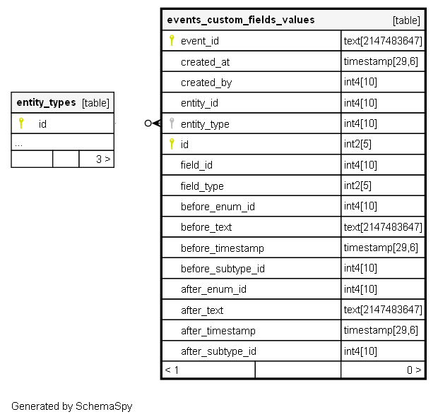 | events_custom_fields_values_pkey | Primary key | Asc/Asc | event_id + id |