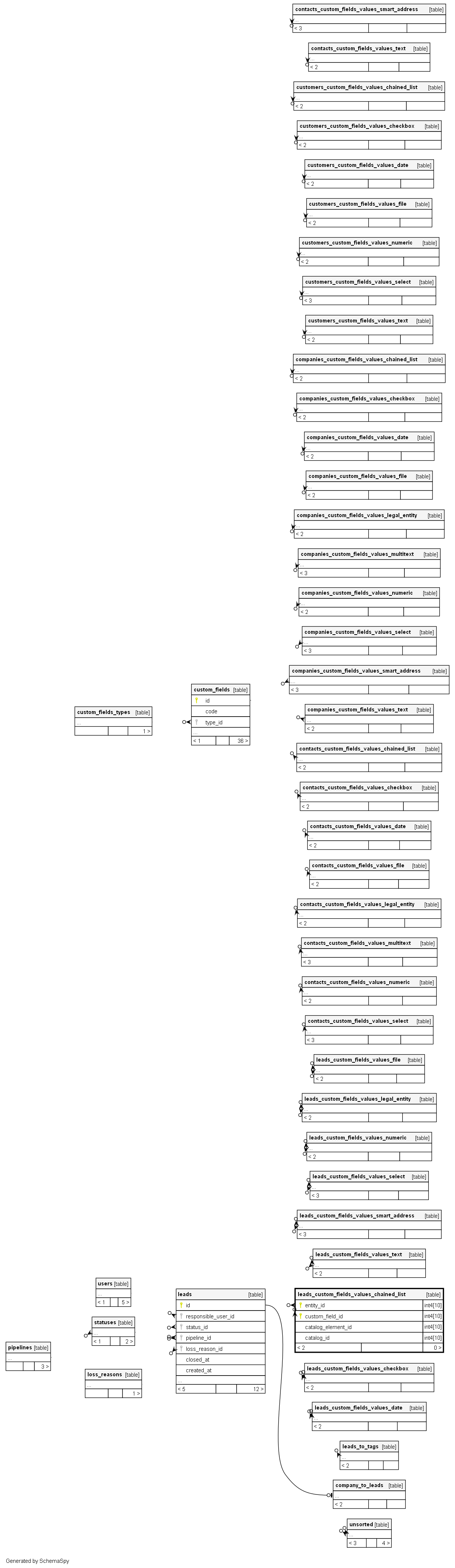 | leads_custom_fields_values_chained_list_pkey | Primary key | Asc/Asc | entity_id + custom_field_id |