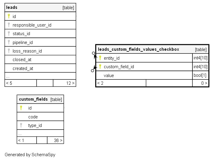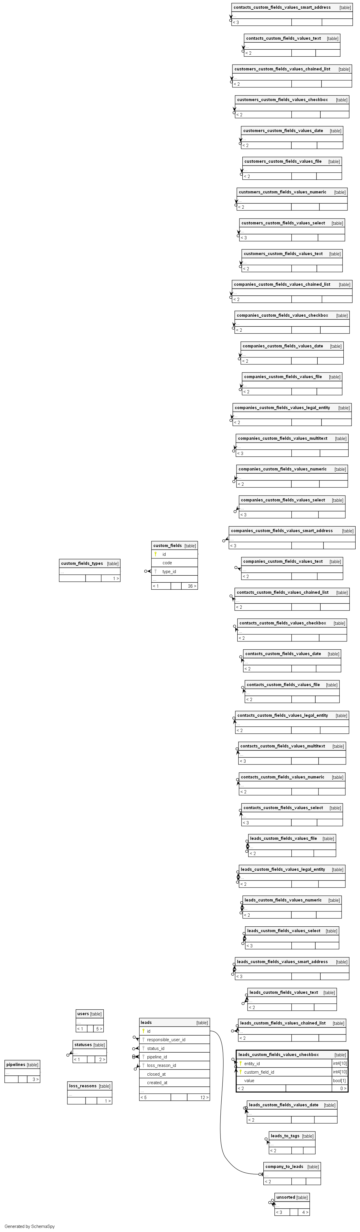 | leads_custom_fields_values_checkbox_pkey | Primary key | Asc/Asc | entity_id + custom_field_id |