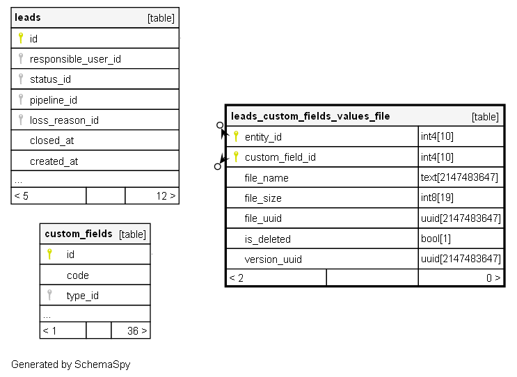 | leads_custom_fields_values_file_pkey | Primary key | Asc/Asc | entity_id + custom_field_id |