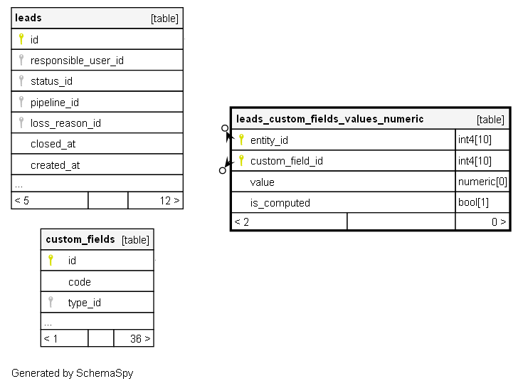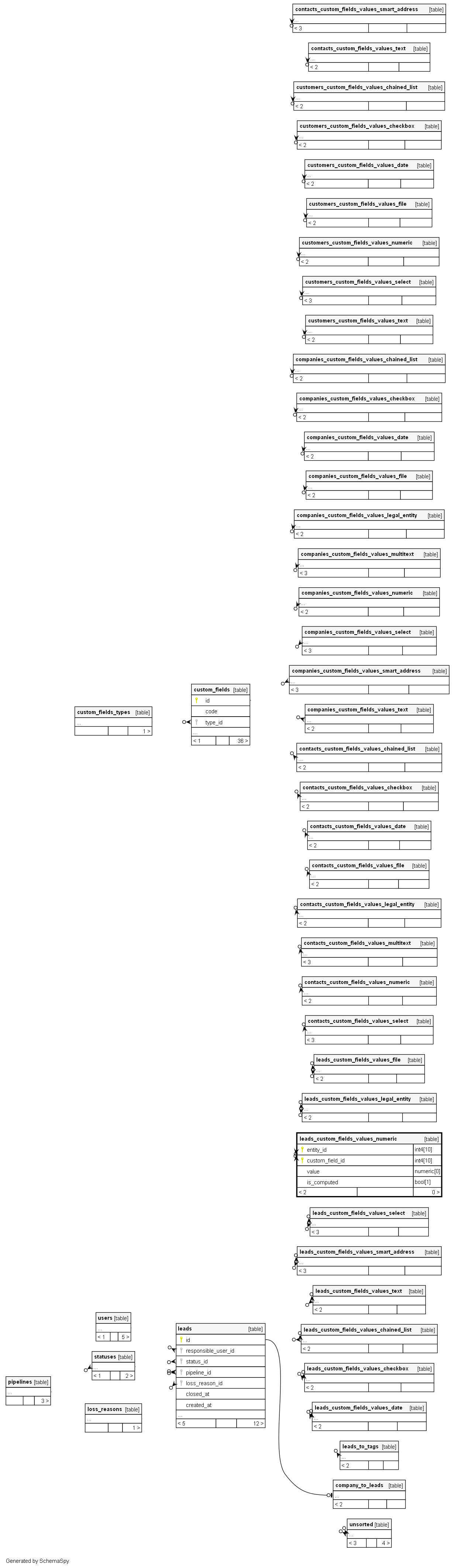| leads_custom_fields_values_numeric_pkey | Primary key | Asc/Asc | entity_id + custom_field_id |