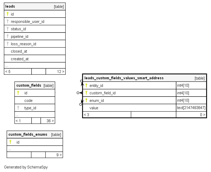 | leads_custom_fields_values_smart_address_pkey | Primary key | Asc/Asc/Asc | entity_id + custom_field_id + enum_id |