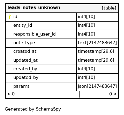 | leads_notes_unknown_pkey | Primary key | Asc | id |