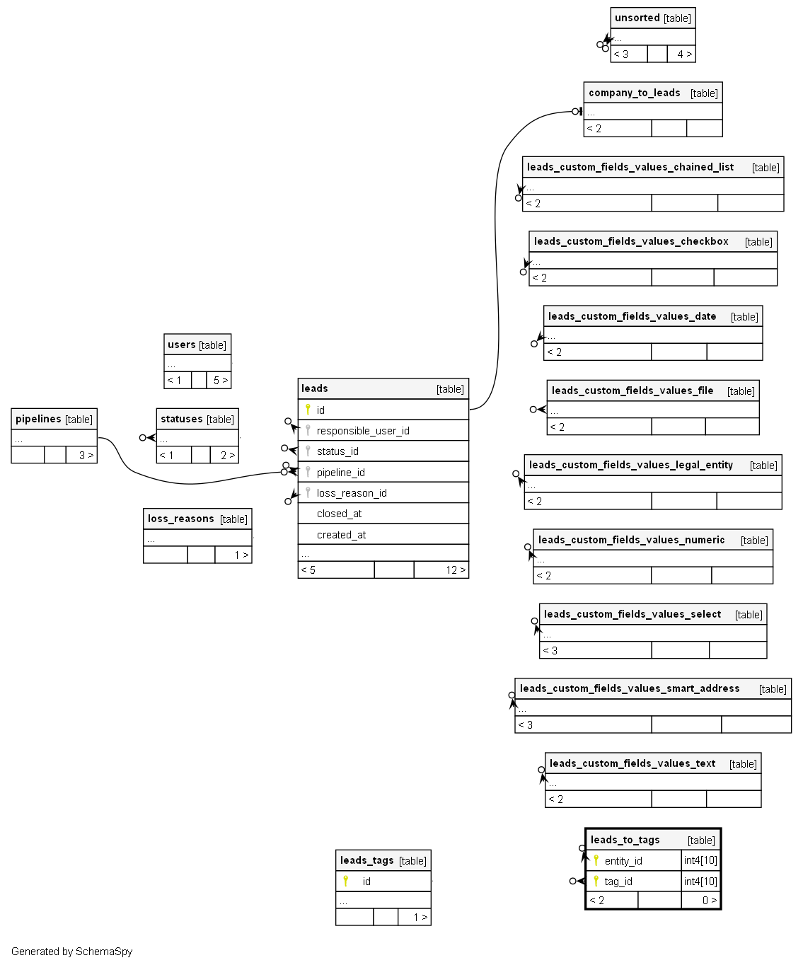 | leads_to_tags_pkey | Primary key | Asc/Asc | entity_id + tag_id |